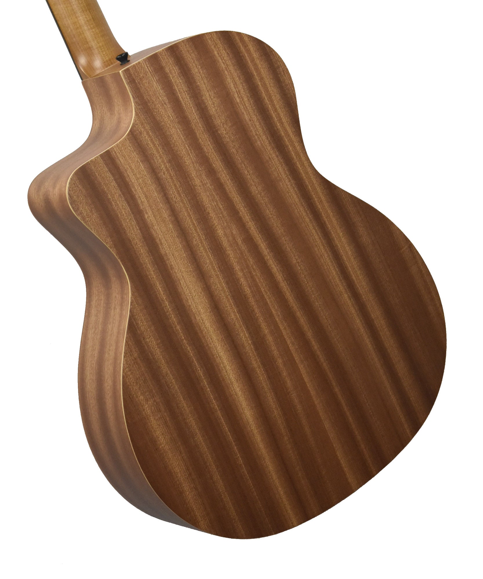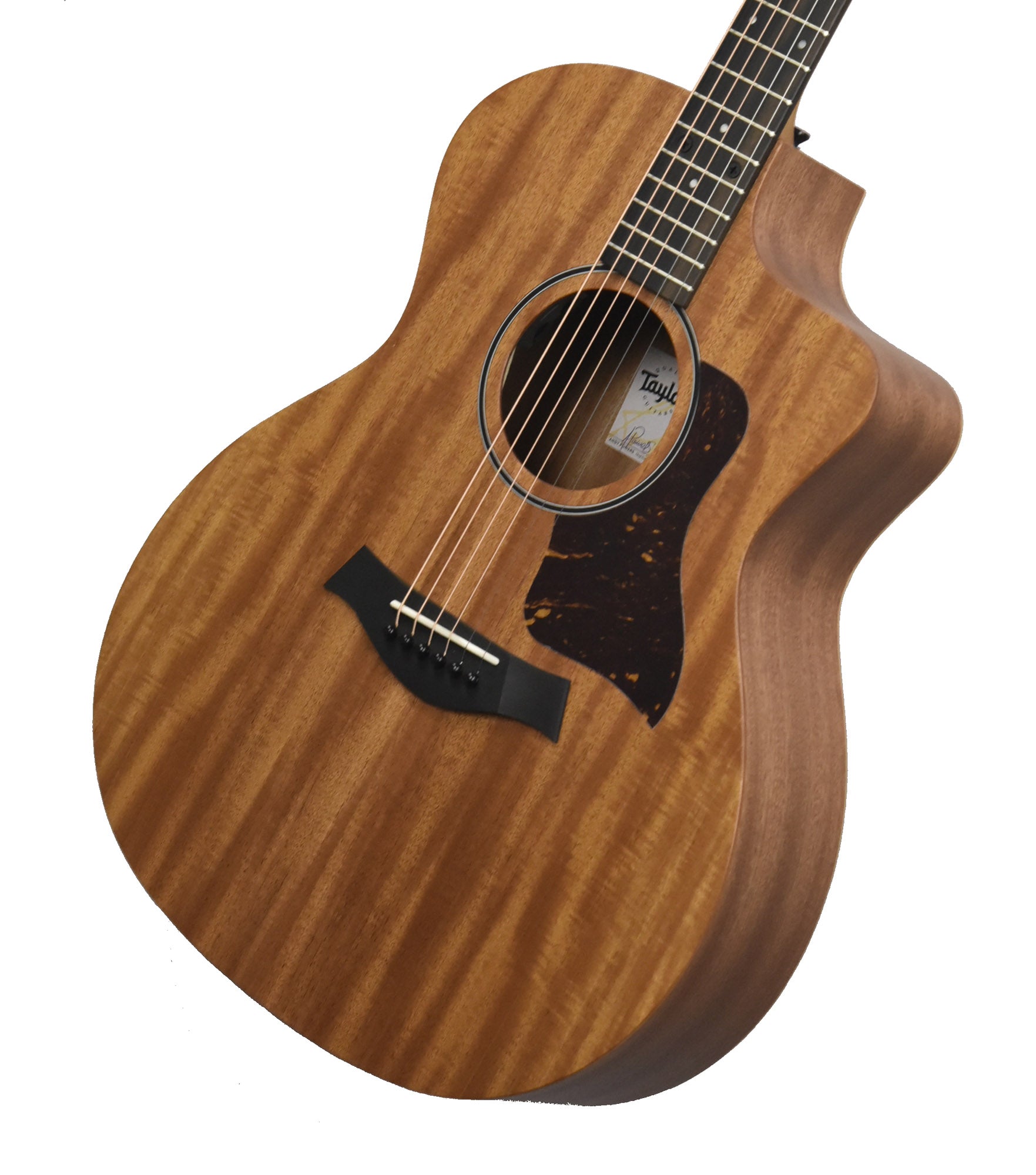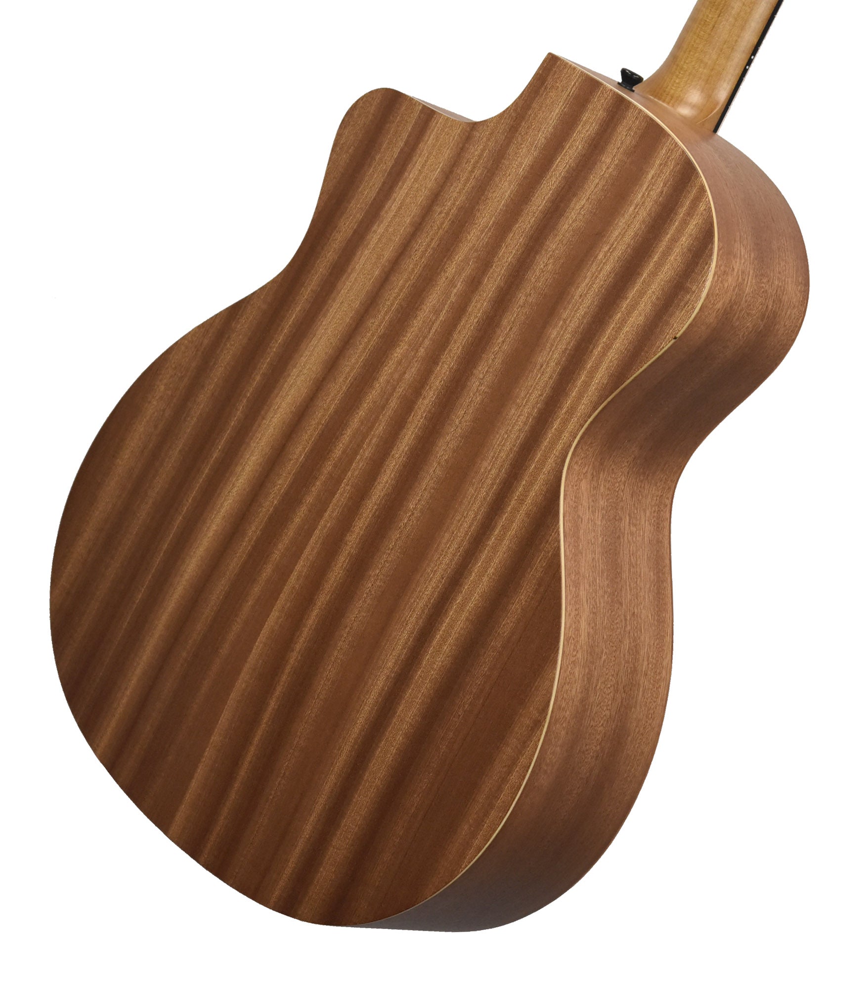 Blending warm, lively acoustic character with signature Taylor playability, the 24ce brings our full-size, full-scale cutaway Grand Auditorium experience to an accessible entry-level price point. A solid mahogany top delivers a warm, dry tonal profile with a strong focus on the midrange—perfect for players who enjoy a rootsy, earthy sound. Featuring layered sapele back and sides, the 24ce’s tonal balance makes it a dependable choice for strummers and fingerstyle players alike. Inside, Taylor's unique voicing architecture bolsters the overall volume and sustain, with greater harmonic agreement between notes along the entire ebony fretboard. A slim, heelless maple neck delivers the smooth, familiar feel Taylor players expect. Visually, the 24ce keeps things simple yet stylish with subtle 4mm dot inlays, a single-ring black rosette, chrome tuners, and a faux-tortoiseshell pickguard. This model includes onboard Fishman Sonitone GT-2 electronics and ships in a gig bag so you can easily plug in and play wherever your music takes you.