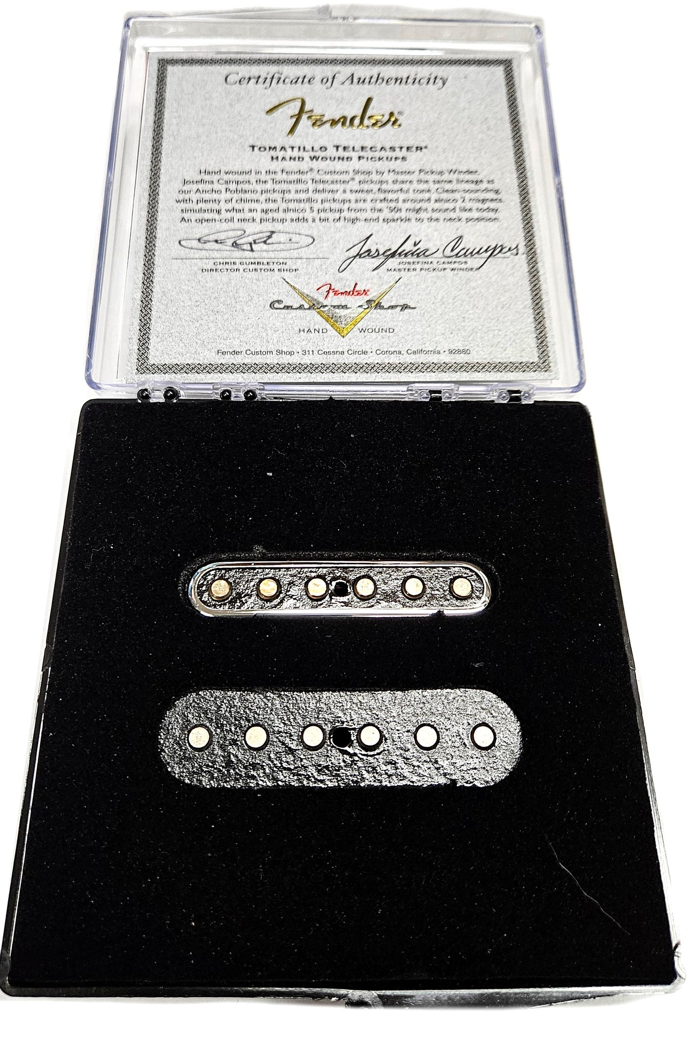 This set of Hand Wound Tomatillo Telecaster single-coil pickups shares the same lineage as Fender's Ancho Poblano and El Diablo pickups and delivers a sweet flavorful tone. Clean-sounding, with plenty of chime, the Tomatillo pickups are crafted around alnico 2 magnets, simulating what an aged alnico 5 pickup from the ‘50s might sound like today. An open coil neck pickup adds a bit of high-end sparkle to the neck position.