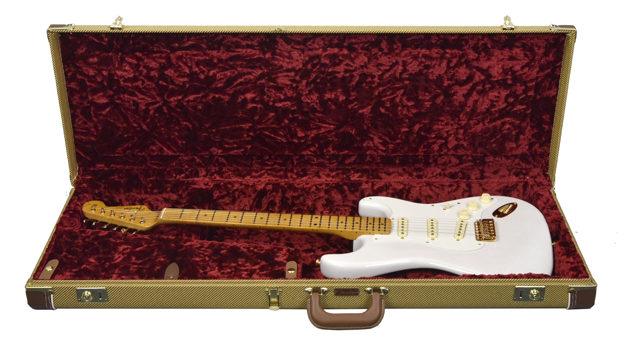 With its alluring curves, sparkling sounds and groundbreaking tremolo bridge, Fender's new 1954 Stratocaster® was a phenomenon, unlike anything the world had ever seen. By 1957, the Stratocaster had crystallized into a mid-century masterpiece.