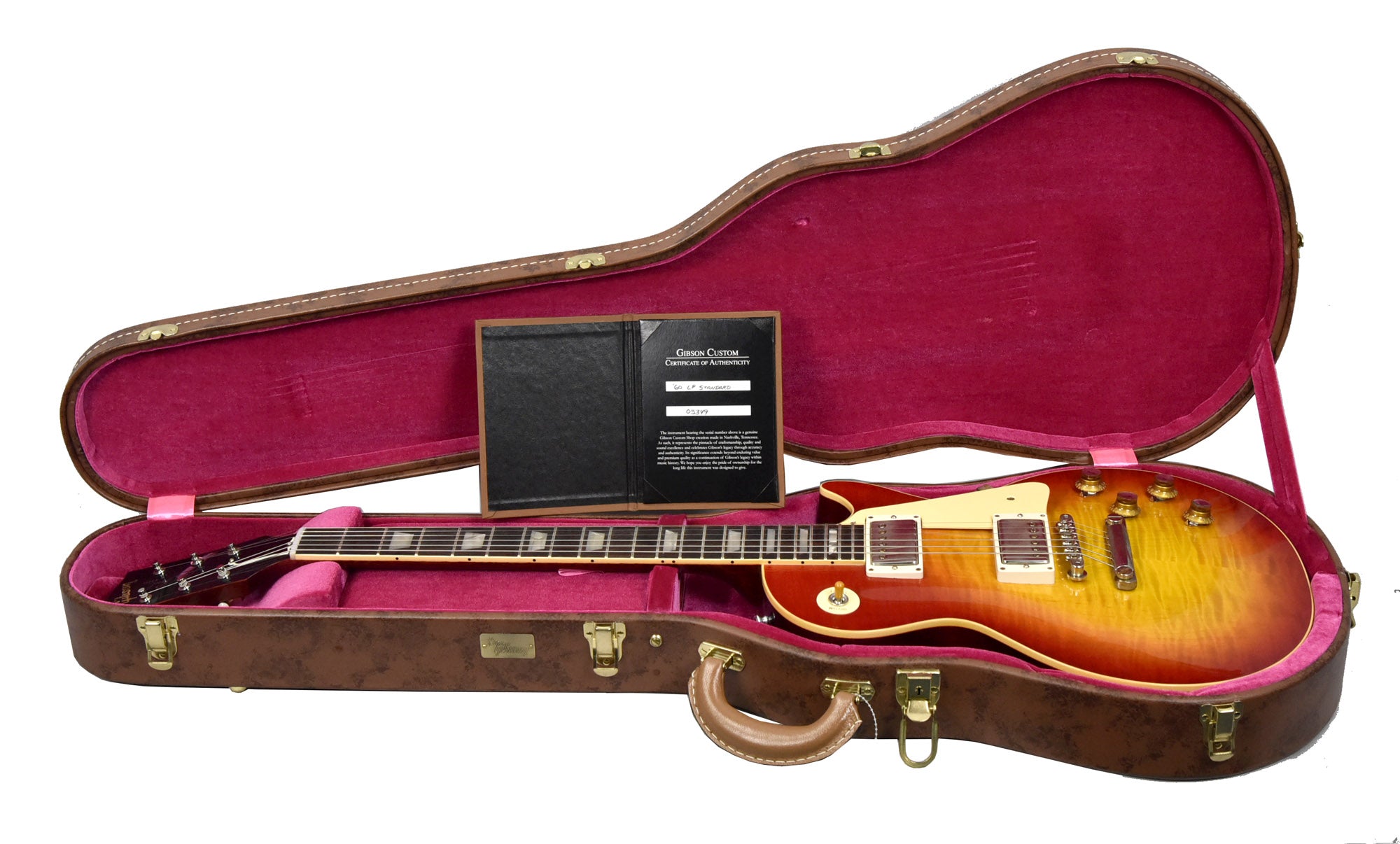 This Gibson Custom 1960 Les Paul Standard Reissue VOS in Washed Cherry Sunburst is brand new and includes its original hardshell case, certificate of authenticity, and manufacturer's warranty.
