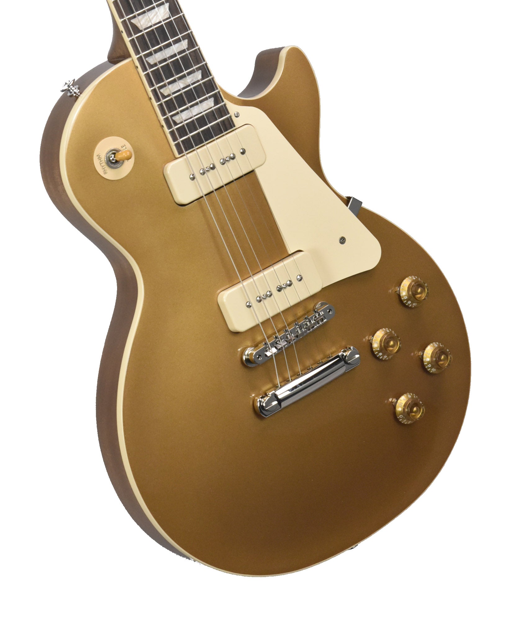 The mahogany neck—featuring a rosewood fingerboard, trapezoid inlays, and a 50s Vintage profile—keeps the feel authentically vintage for comfortable chording and smooth bends, while 22 medium jumbo frets allow for both precise intonation and easy fretwork. On the hardware side, you’ll find an ABR-1 Tune-O-Matic™ bridge paired with an aluminum Stop Bar tailpiece—classic components that enhance stability and sustain. Vintage Deluxe tuners with Keystone buttons complete the old-school look.