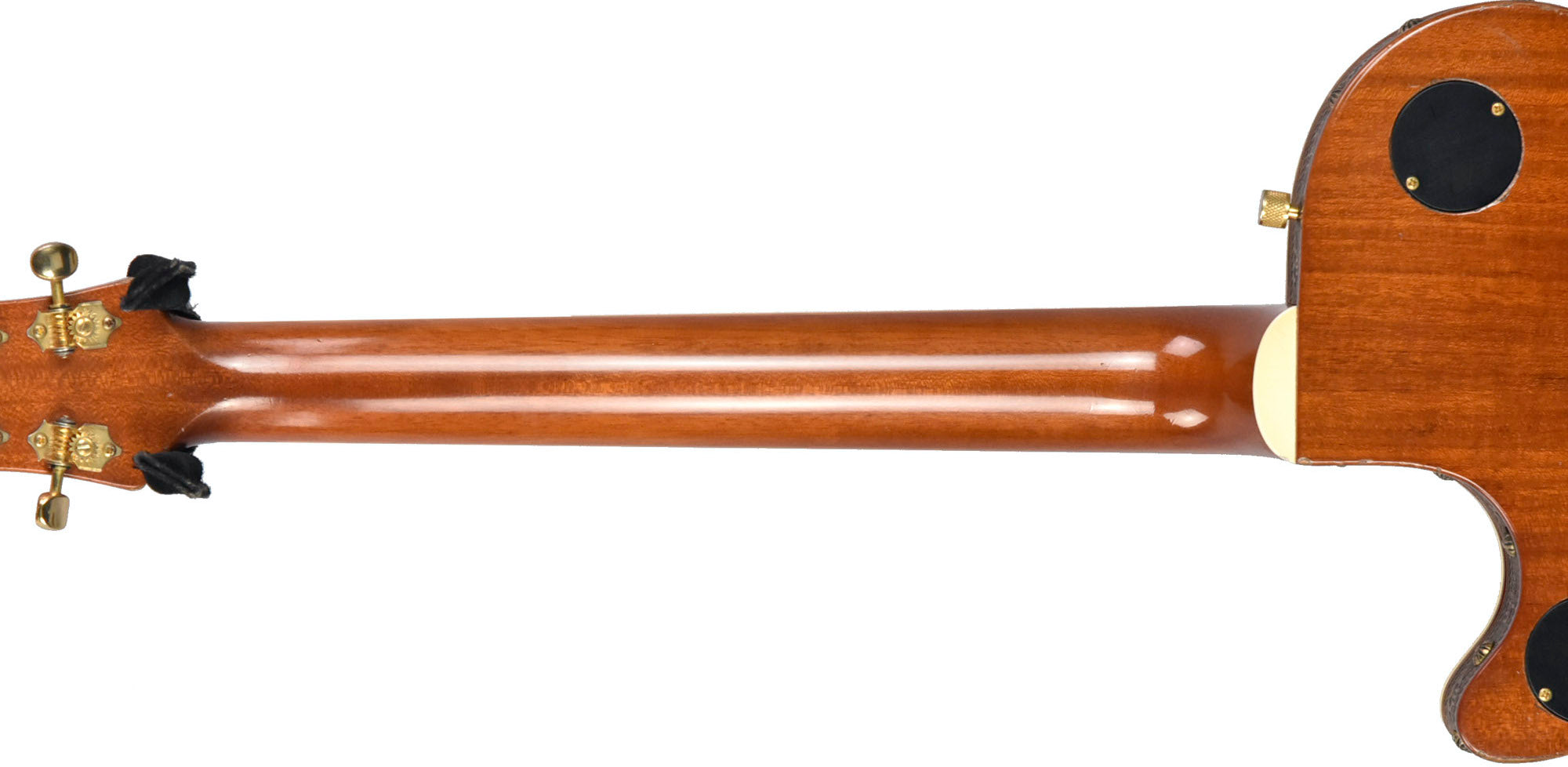 The Roundup Model always brings a smile to our faces! So many cool visual elements to appreciate, but the Brazilian Rosewood Fingerboard is at the top of the list! It's a dark and rich-looking fingerboard, elevated further by the ultra-slick Western Themed Fingerboard Inlays! The fingerboard is also bound to elevate the look further. The neck itself is made from Mahogany and is carved to the Stock C Profile. It also features 22 Vintage Style Frets, a Bone Nut, and Gotoh Tuners. Overall, the neck is very comfortable.