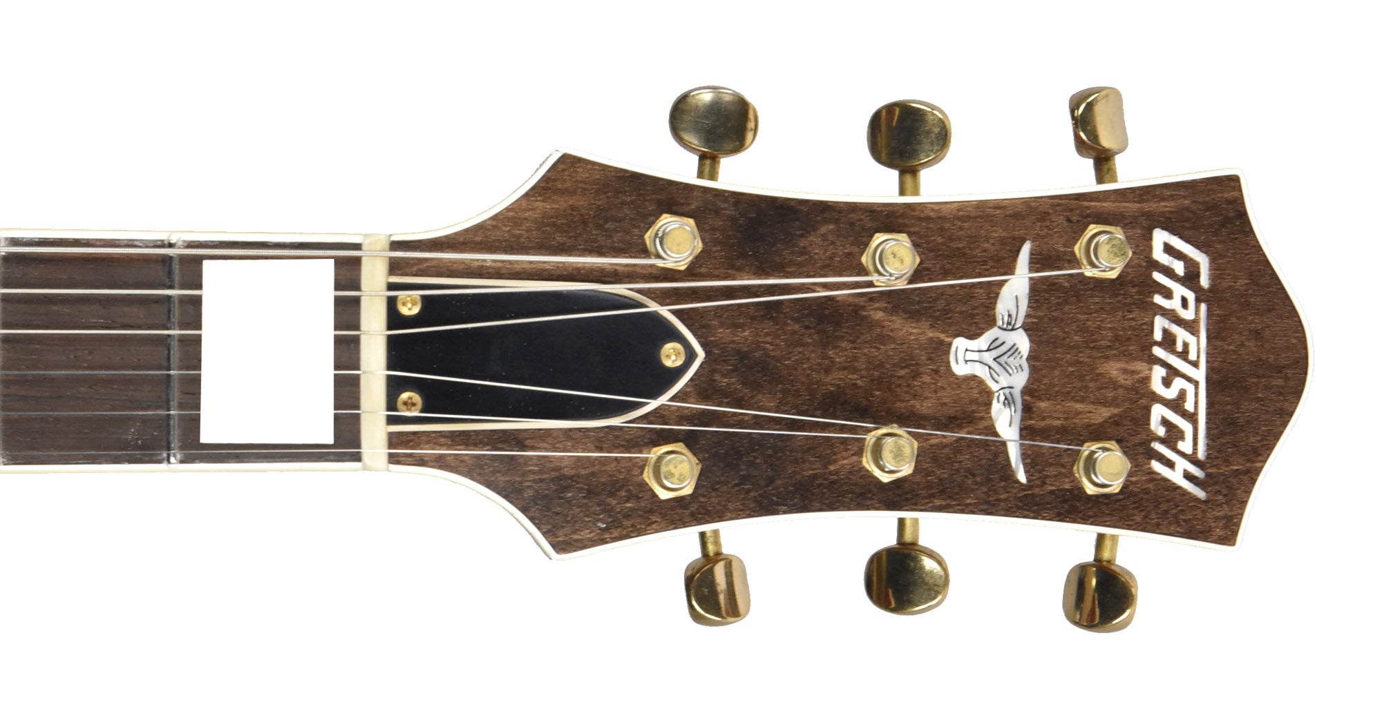 A pair of Dynasonic Pickups are installed, which perfectly captures the tone of the 1950s. Personally, these are my favorite pickups in a Gretsch for clean tones. The tones they produce are so sweet, so chimey, so dynamic, so addictive! Oftentimes, you see these pickups in larger hollow bodies that are noted for their sweet and warm clean tones. This guitar is a solid body, so it even behaves well when driven.