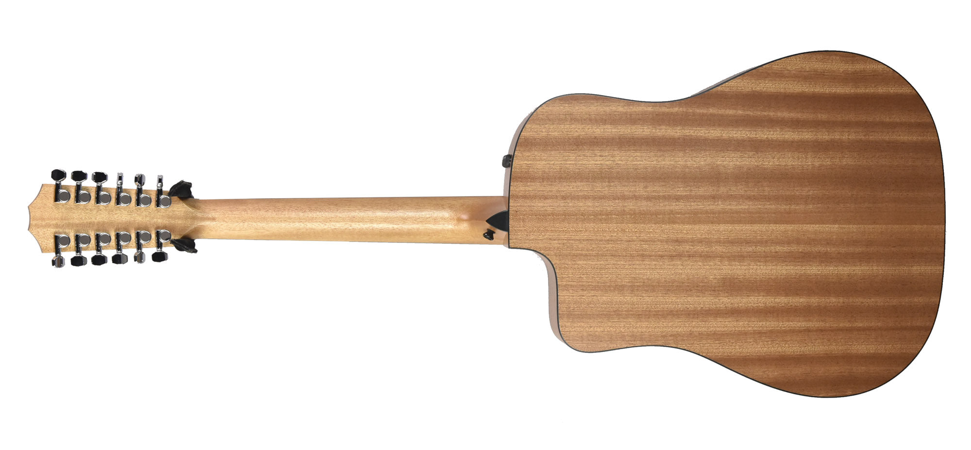 Taylor 12-string acoustics are well known for their easy playability and great tone. This Taylor 150E lives up to that expectation and more. With layered Sapele back and sides and a solid Sitka Spruce top, this 12-string acoustic has a tone that leans a little more to the treble side. The bass is slightly brighter with a nice even mid-range. The neck is very easy to play for a 12-string guitar. Add in the Taylor Expression System 2 and you have a guitar that is perfect for live performance.