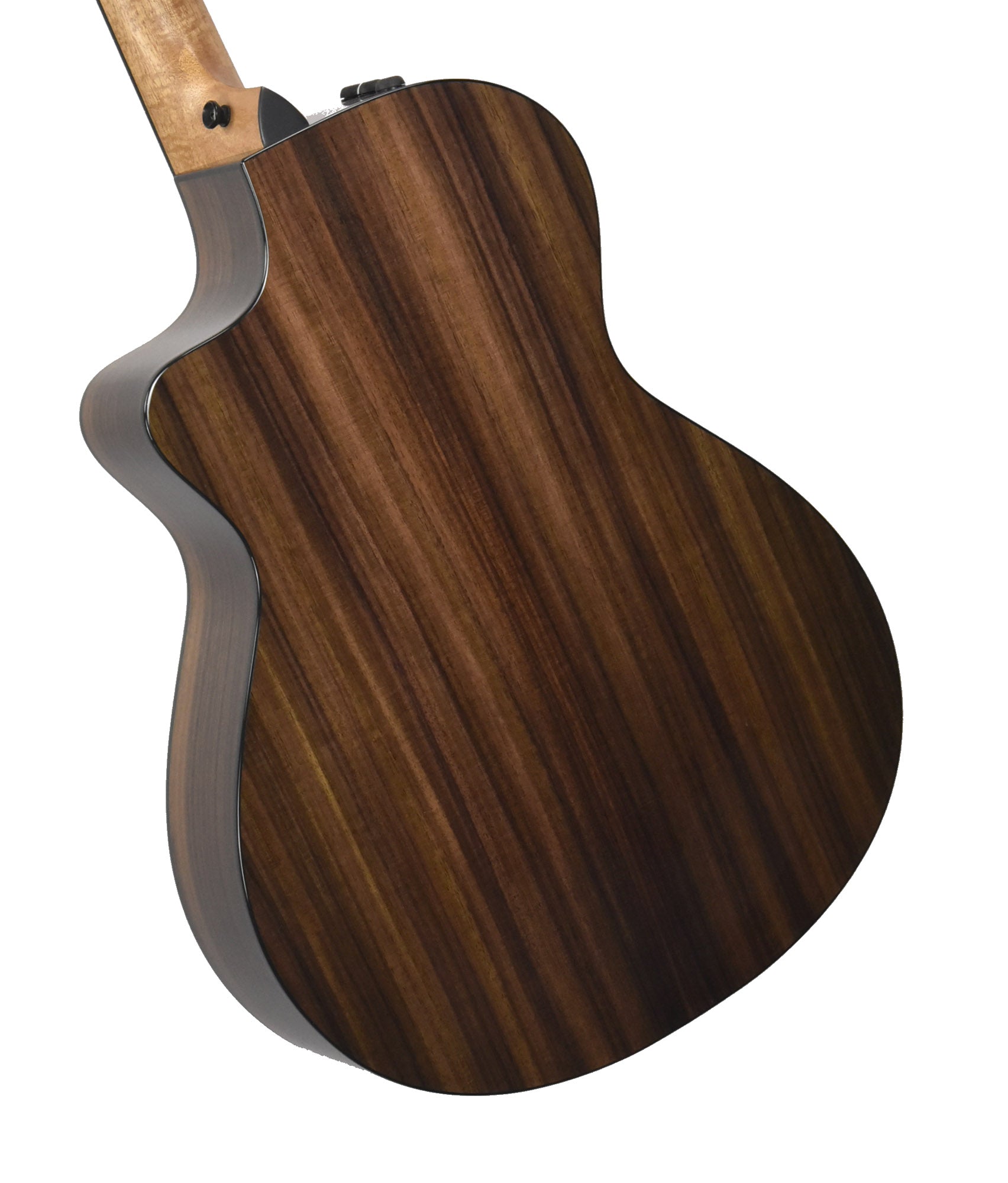 With its Dreadnought body and solid torrefied spruce top, the 210ce Plus serves up a commanding voice with a remarkable balance of projection and articulation. Our special roasting process for the top yields a touch of aged-in warmth and sweetness, adding up to a bold acoustic response that's suited to everything from practice, live performance and jam sessions with other musicians. As a Plus model, this guitar boasts upgraded details such as black binding, a matching pickguard, nickel tuners and a full-body gloss finish, along with the lightweight, yet super-durable AeroCase for transportation. It includes a built-in ES2 pickup so you can plug in and play on the fly.