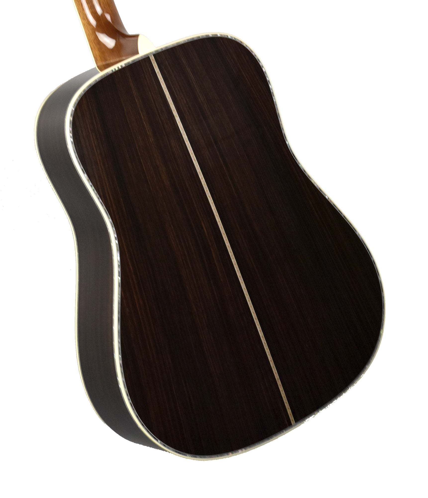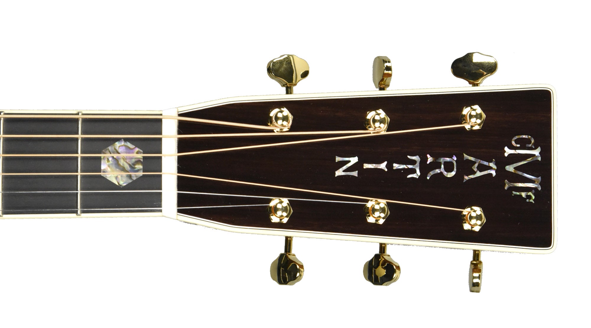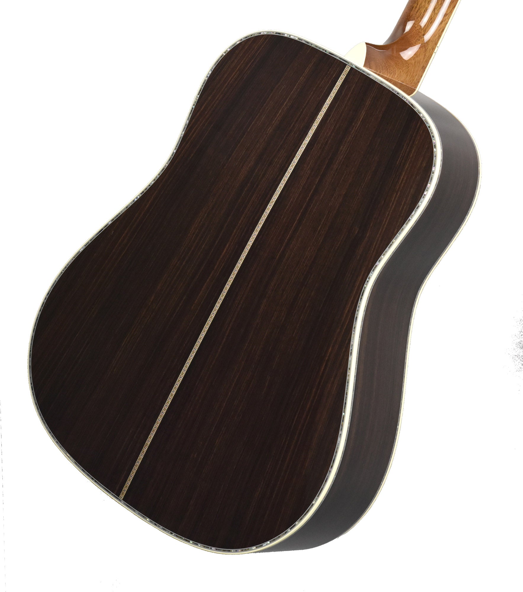 The neck is made from Genuine Mahogany and is shaped to Martin's Modified Low Oval Profile with their High-Performance Taper. This is a very comfortable and easy neck to play, even for extended periods of time. The fingerboard is made from Ebony which has the large 45-Style Hexagonal Inlays made of Abalone for an absolutely striking look. Bright, iridescent colors explode from the inlays, accentuated further by the black Ebony fingerboard. The fingerboard is bound with Antique White binding, completing its High-End look perfectly.