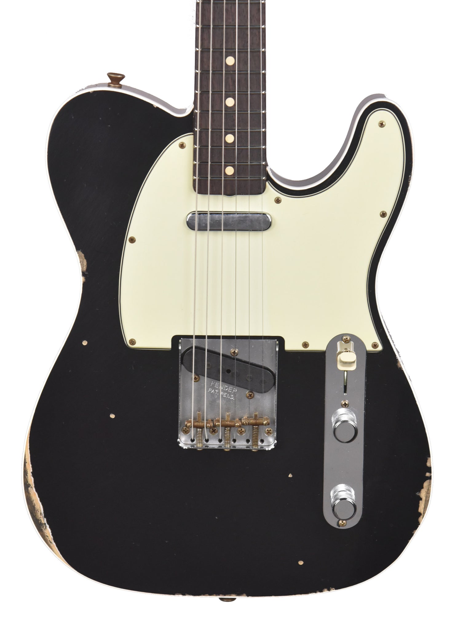 From the double-bound body to the slick Black finish, this Tele Custom is on fire! Expertly relic'd by the Fender Custom Shop, this brand new guitar comes looking like it's been around the globe a few times already.