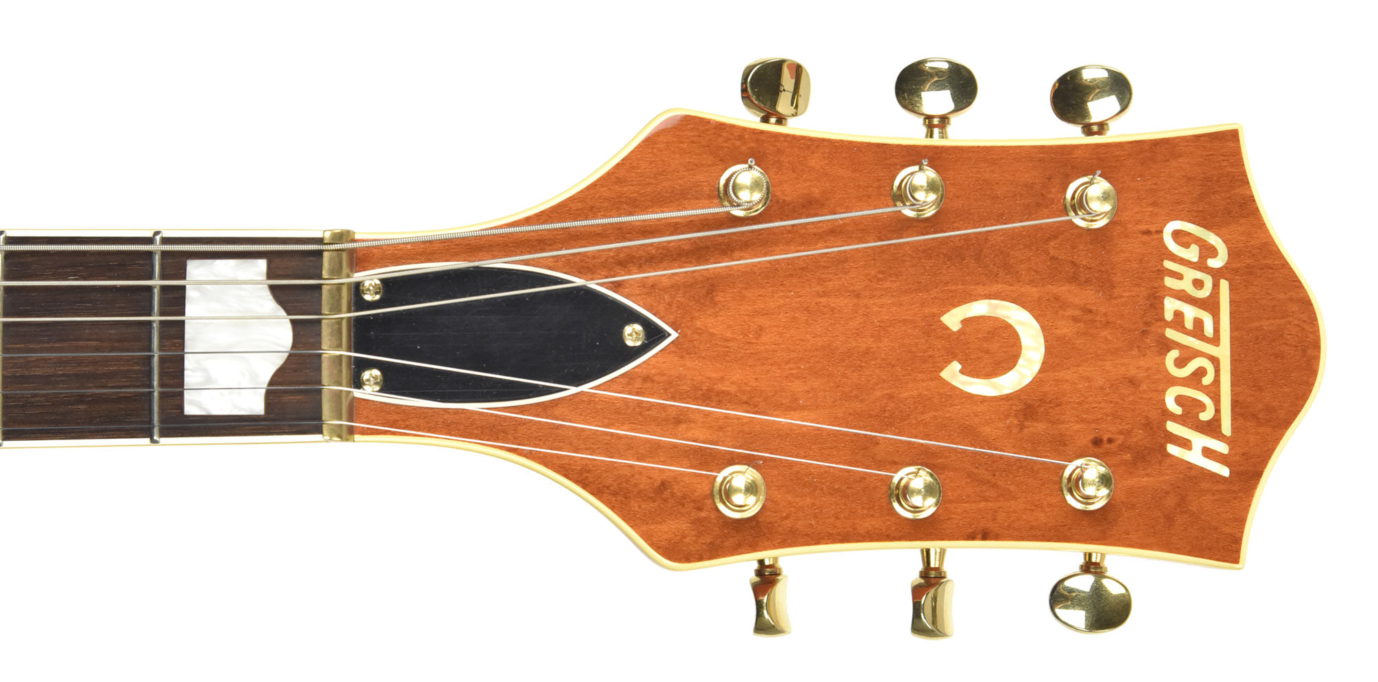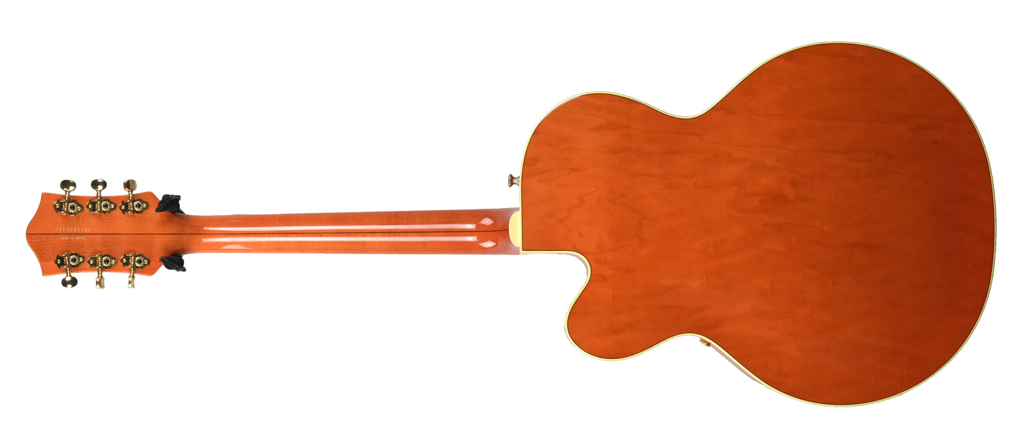 Features include twin DynaSonic™ single-coil pickups, Tru-Arc™ "rocking" bar bridge, lacquer finish, trestle bracing and special neck and headstock profile replicated from Duane's original G6120, heard on many of his chart-topping hits."